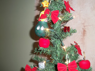 Então o natal passou e só agora coloquei alguns enfeites...mas foi falta de tempo...! Pinguim de porongo e papai noel de porongo enfeite da arvore de natal eram lampadas recicladas e direito a ninho de passarinho...!